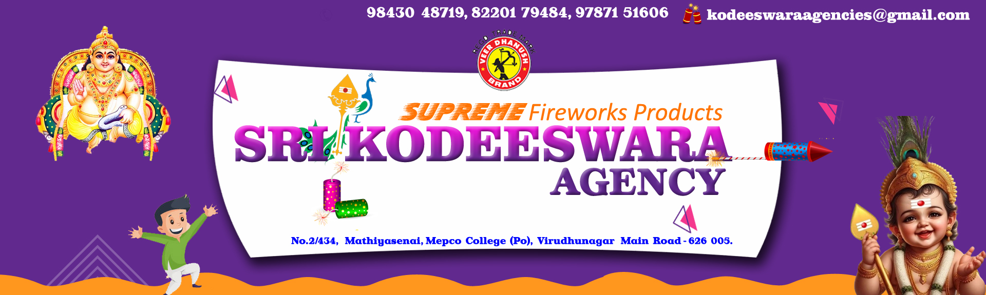Sri Kodeeswara Agenices is one of the leading wholesale and retails suppliers of crackers in Sivakasi. We are into this business for the past 15+ years and have been successfully running our company by selling crackers and delivering happiness in the form of crackers to millions of customers over these years.